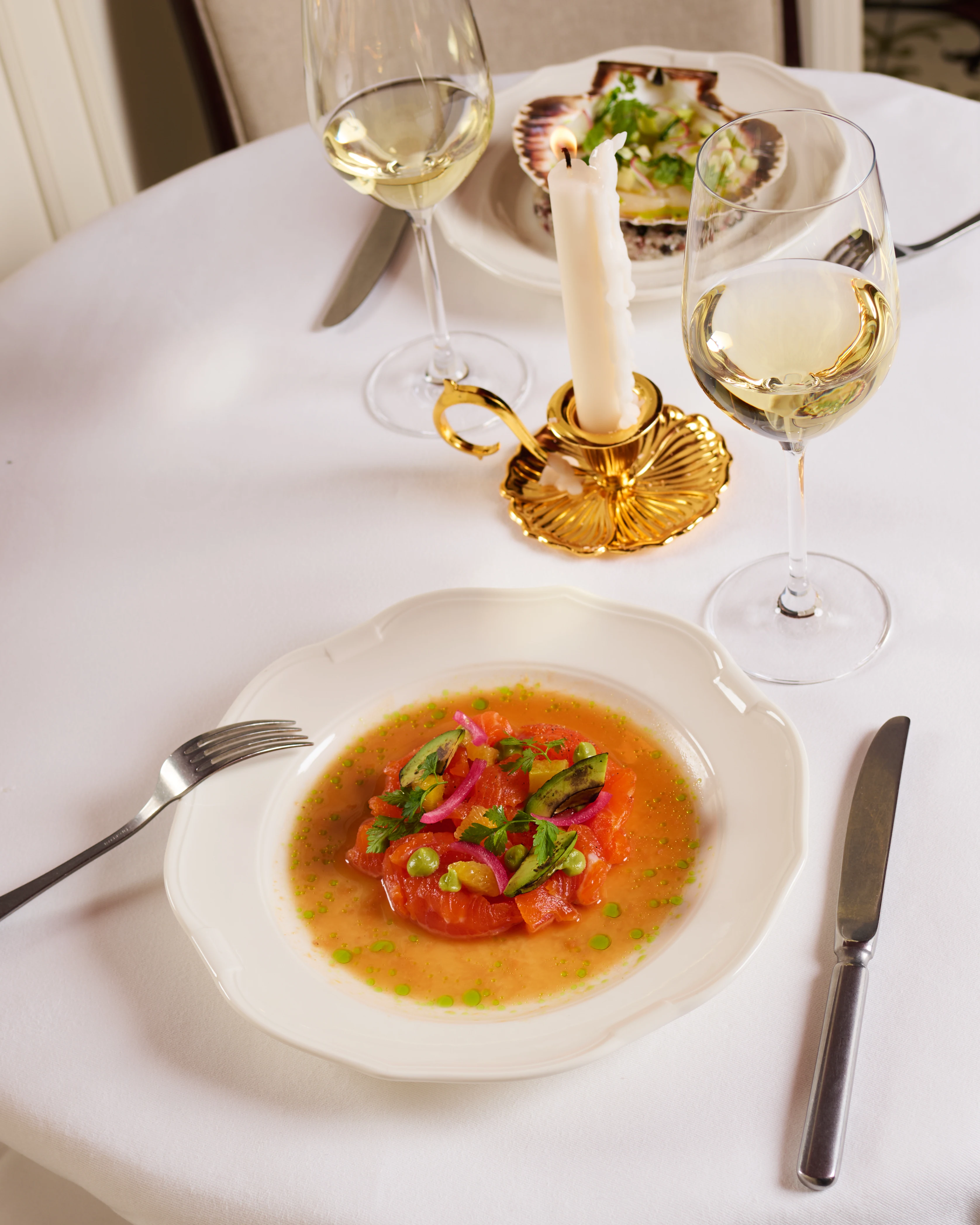 Tables adorned in white cloths, the flicker of candlelight casting shadows between tables. A place where, as the moon ascends, the evening beckons. A journey from dinner and cocktails to the unbound revelry of dancing the night away.